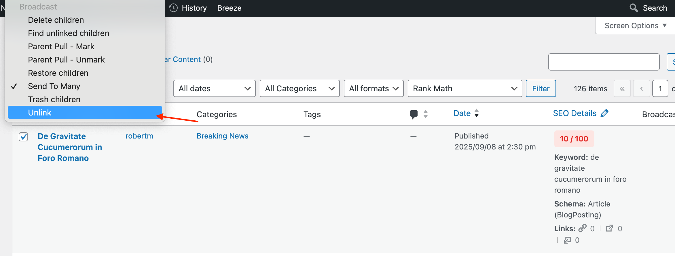 Posts can be unlinked from each other using the bulk actions in the post overview.