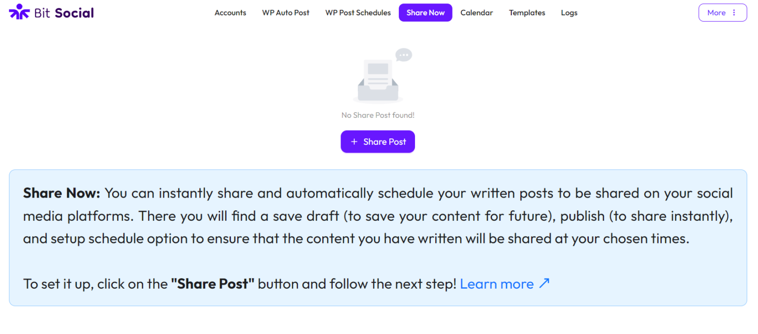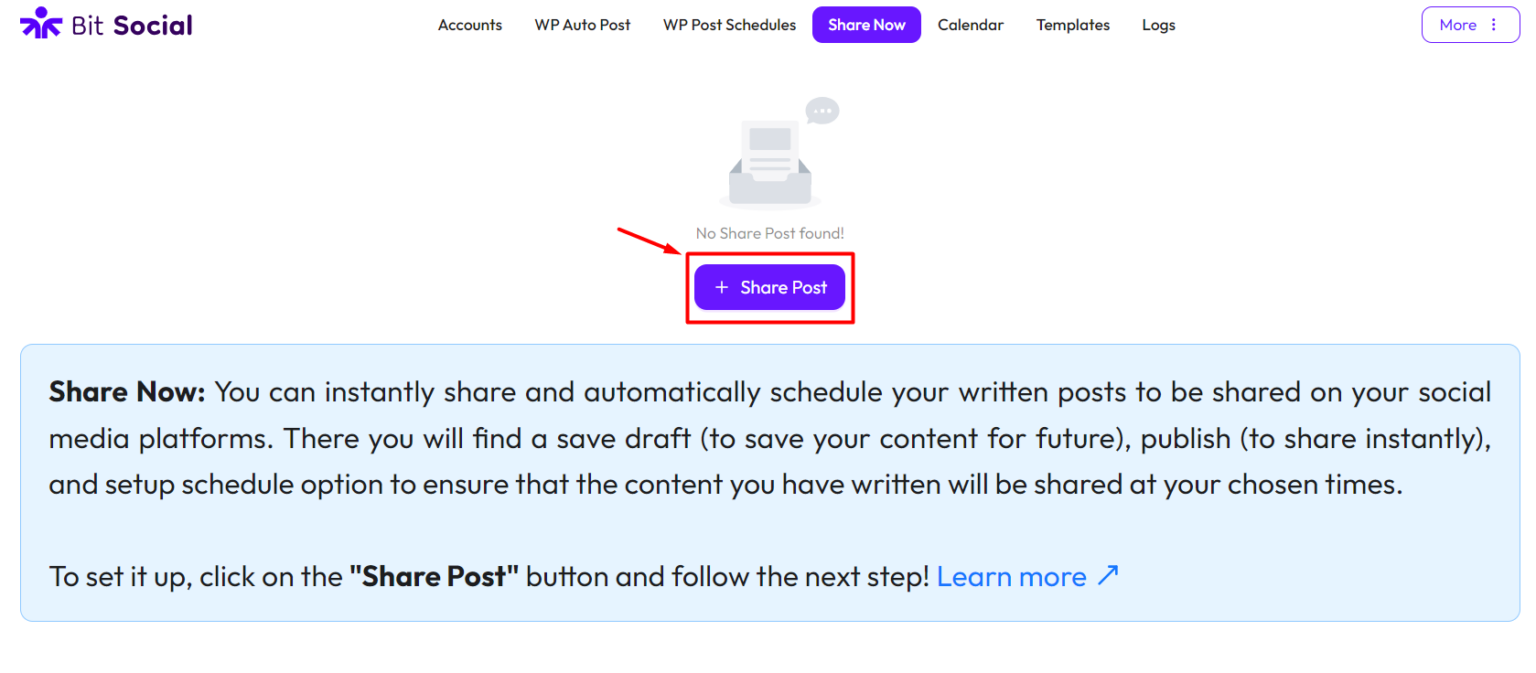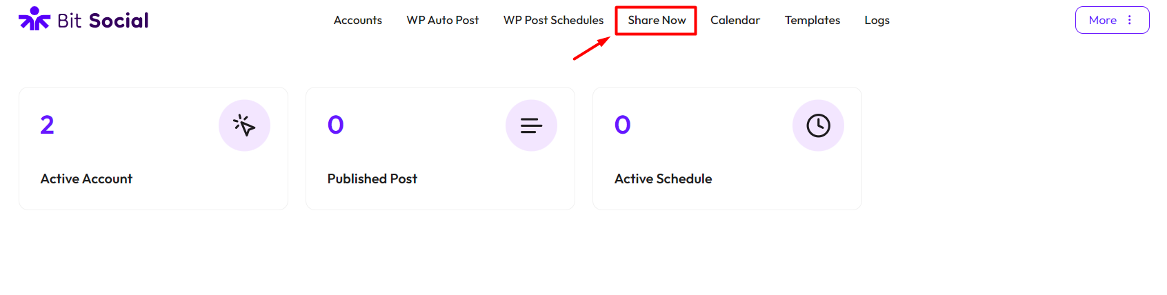 To set up the Share Now feature in Bit Social, go to Bit Social and click on “Share Now” from the top menu.