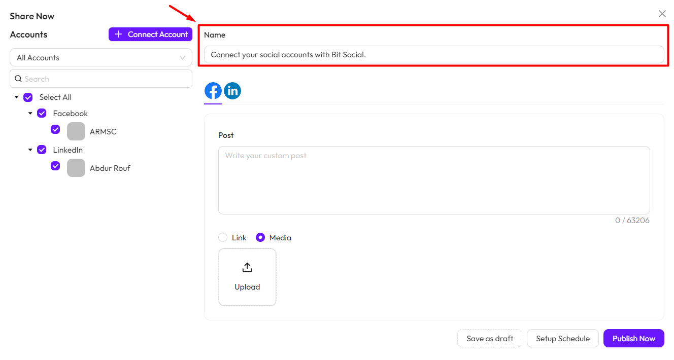 Name: You need to set a name for your post. This name won’t be shared on your social platforms.