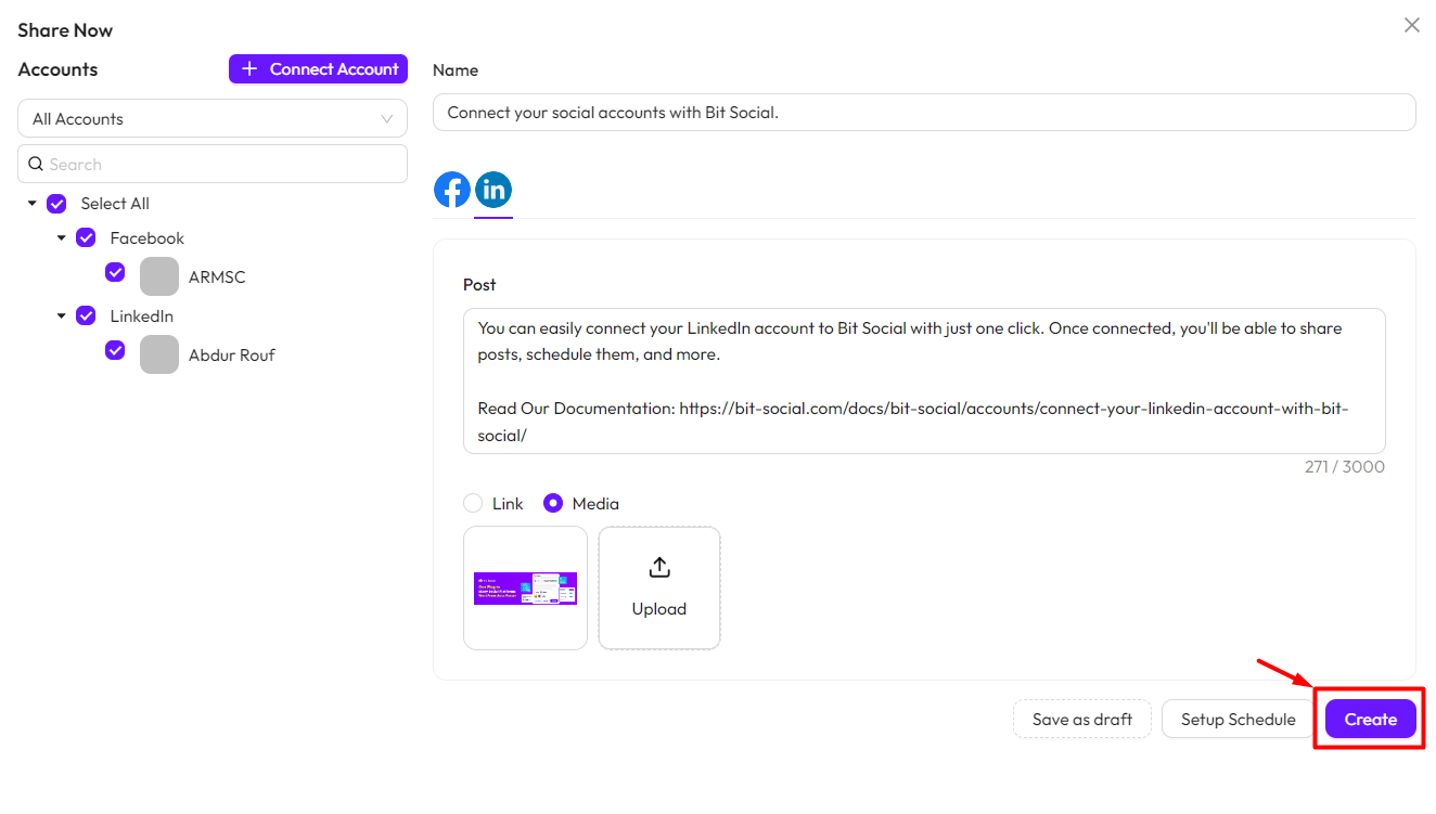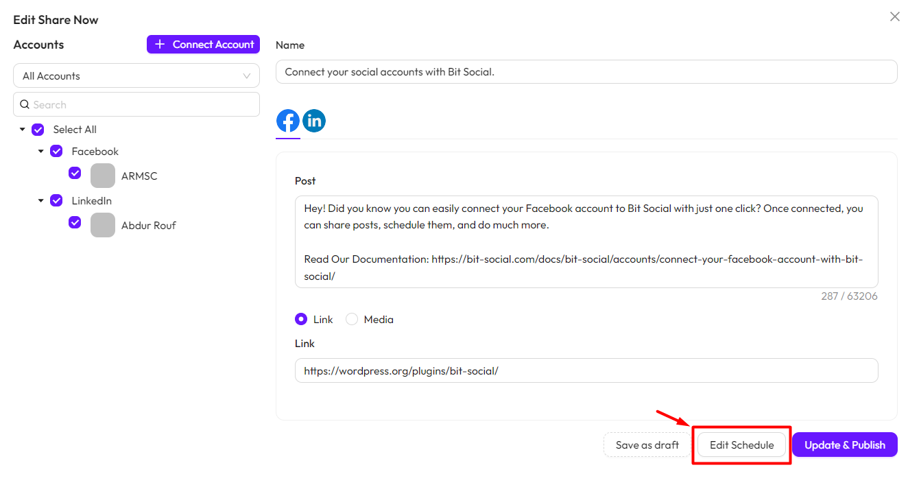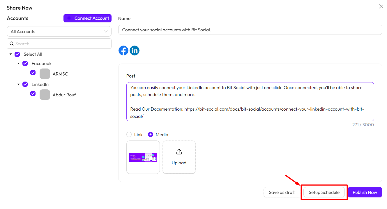 *Note* To use this feature, you must connect your social accounts with Bit Social. Follow this documentation to connect your accounts.