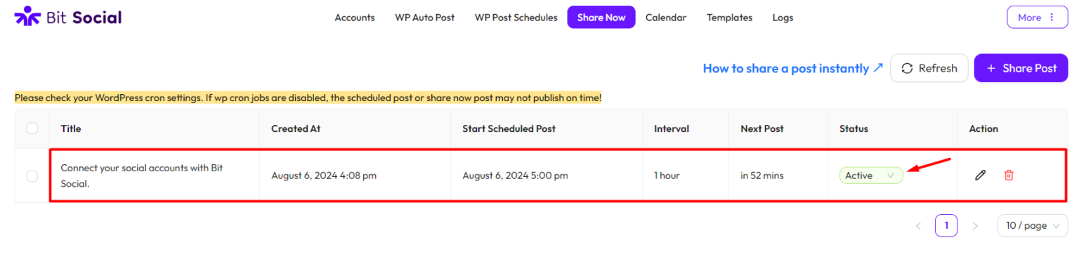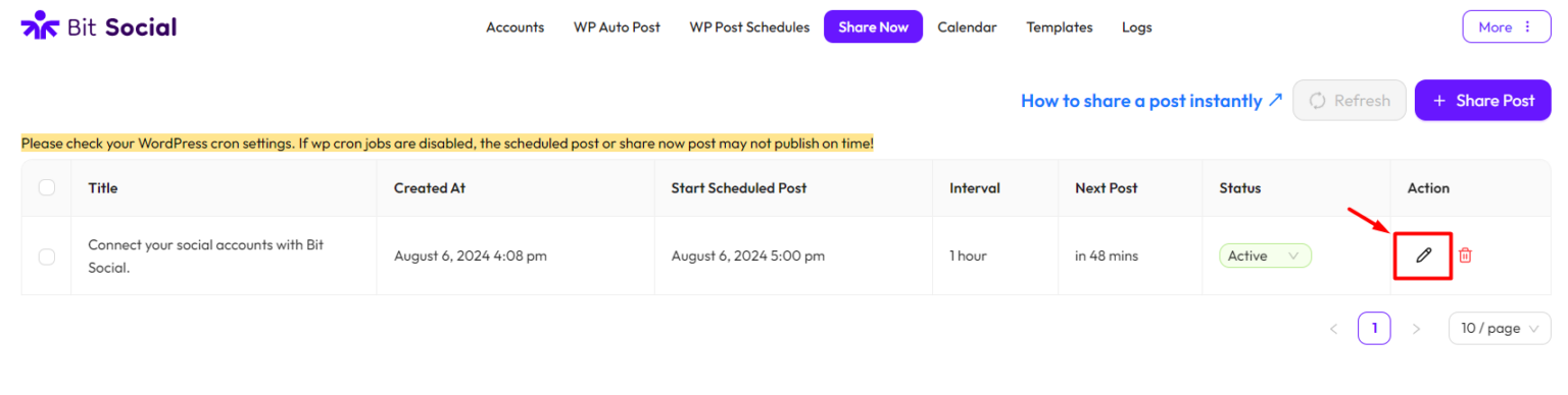 You can also edit your post and schedule by clicking the pen icon under Action. To edit your schedule, click on Edit Schedule button.
