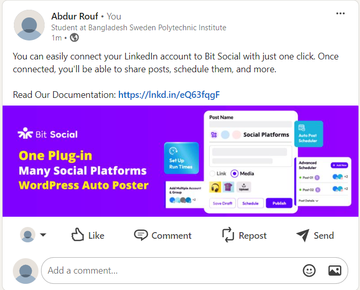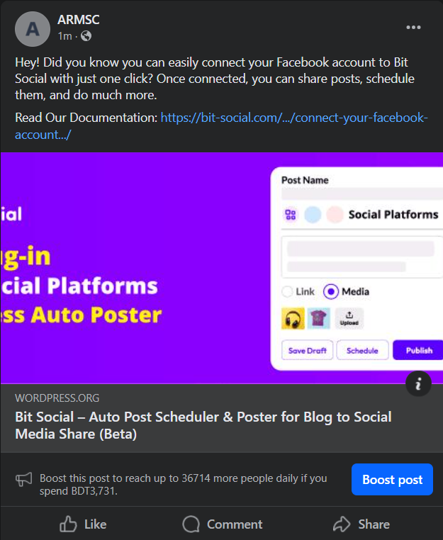 Instantly share posts on social media platforms with Bit Social